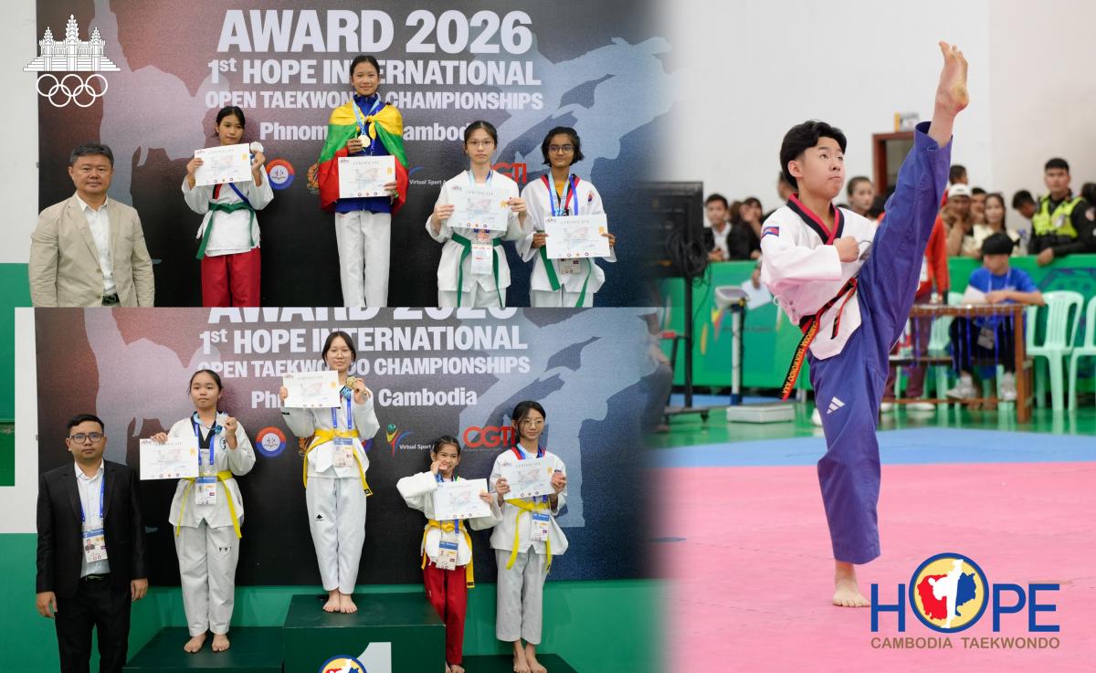 The Hope International Open Taekwondo Championships 2026 will be held from January 9 to 11, 2026 at the Buyong Hall of the National Olympic Stadium, with a total of 560 athletes from 42 clubs. Including 4 Myanmar clubs, 1 Singapore club, 1 Vietnam club, 1 Malaysia club, 1 South Korea club and 34 Cambodia clubs competing in a total of 206 disciplines.