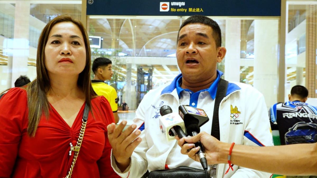 Phnom Penh: Mr. San Saoyan, a former strong kun Khmer fighter in Banteay Meanchey province and currently is a Kun Khmer coach and the father of Kun Khmer player Chhong Visal, the silver medalist at the 3rd Asian Youth Games in the Kingdom of Bahrain, was invited to welcome his son back from participating in the competition in the Kingdom of Bahrain.