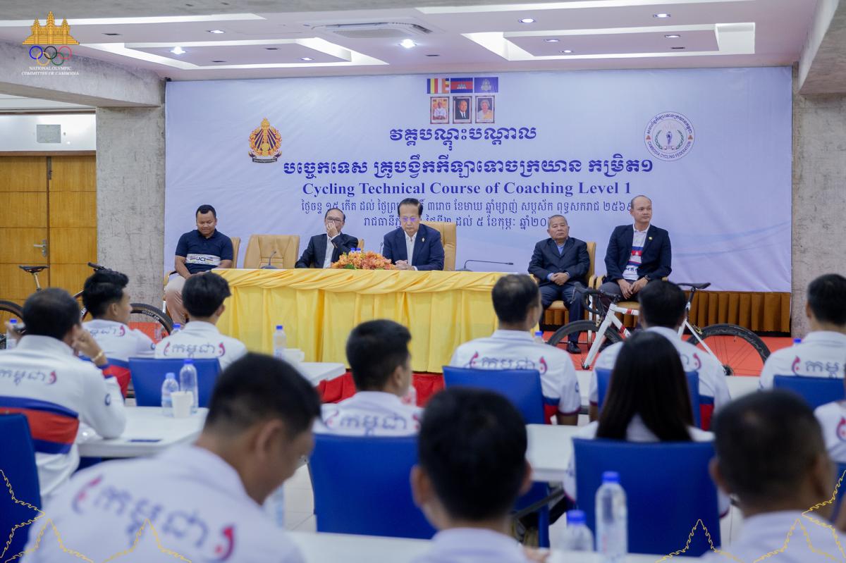 After completing the above course, His Excellency expressed his admiring and high appreciation for the support of the Ministry of Education and the cooperation of the National Olympic Committee of Cambodia in organizing the Level 1 Technical Training Course for Cycling Coaches, which has made the federation’s coaches understand more clearly about the techniques in preparing and coaching athletes to prepare for participating in the national and international cycling competitions.