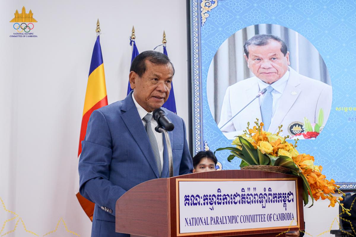 នៅព្រឹកថ្ងៃអង្គារទី៣១ ខែមីនា ឆ្នាំ២០២៦ ឯកឧត្ដមបណ្ឌិត ថោង ខុន ទេសរដ្ឋមន្ត្រីទទួលបន្ទុកបេសកកម្មពិសេស និងជាប្រធានគណៈកម្មាធិការជាតិអូឡាំពិកកម្ពុជា តំណាងដ៏ខ្ពង់ខ្ពស់សម្ដេចមហាបវរធិបតី ហ៊ុន ម៉ាណែត នាយករដ្ឋមន្ត្រីនៃ ព្រះរាជាណាចក្រកម្ពុជា និងជាប្រធានគណៈកម្មាធិការជាតិប៉ារ៉ាឡាំពិកកម្ពុជា បានអញ្ជើញចូលរួមជាអធិបតីក្នុងពិធីបើកមហាសន្និបាតបូកសរុបការងារ ឆ្នាំ២០២៥ និងលើកទិសដៅឆ្នាំ២០២៦ របស់គណៈកម្មាធិការជាតិប៉ារ៉ាឡាំពិកកម្ពុជា នាមជ្ឈមណ្ឌលជាតិនៃជនពិការ តេជោសែន។